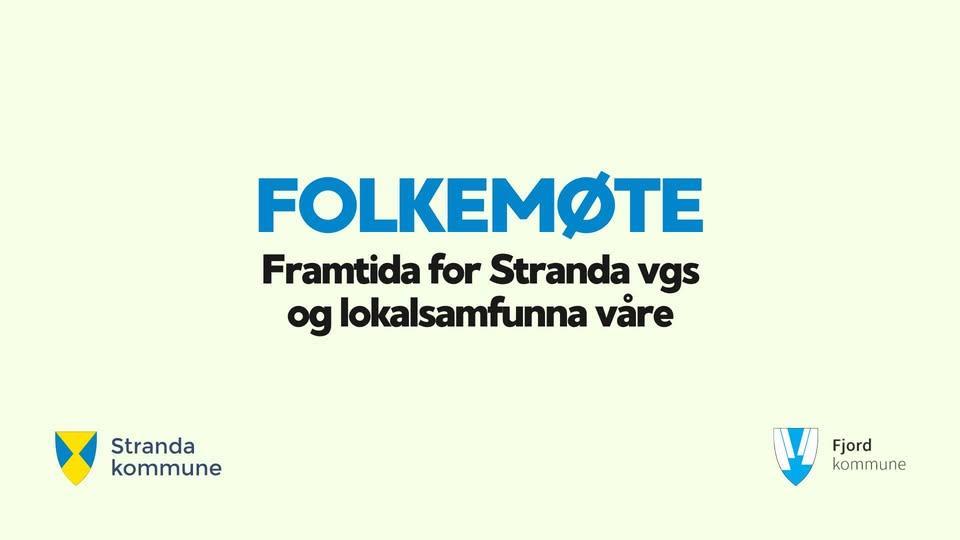 Folkemøte onsdag 24. september Kva framtid skal Stranda vidaregåande skule ha – og kva betyr det for regionen vår? Publisert 19.09.2025 kl. 08.19